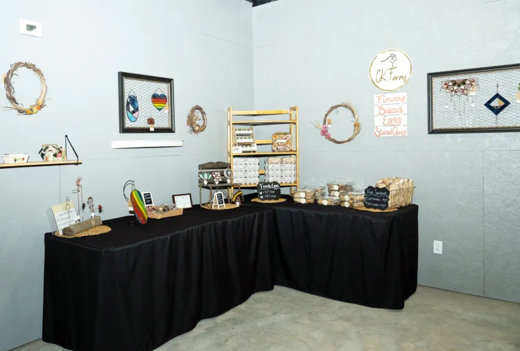 of goods for sale, including one-of-a-kind items, at an affordable cost and the food